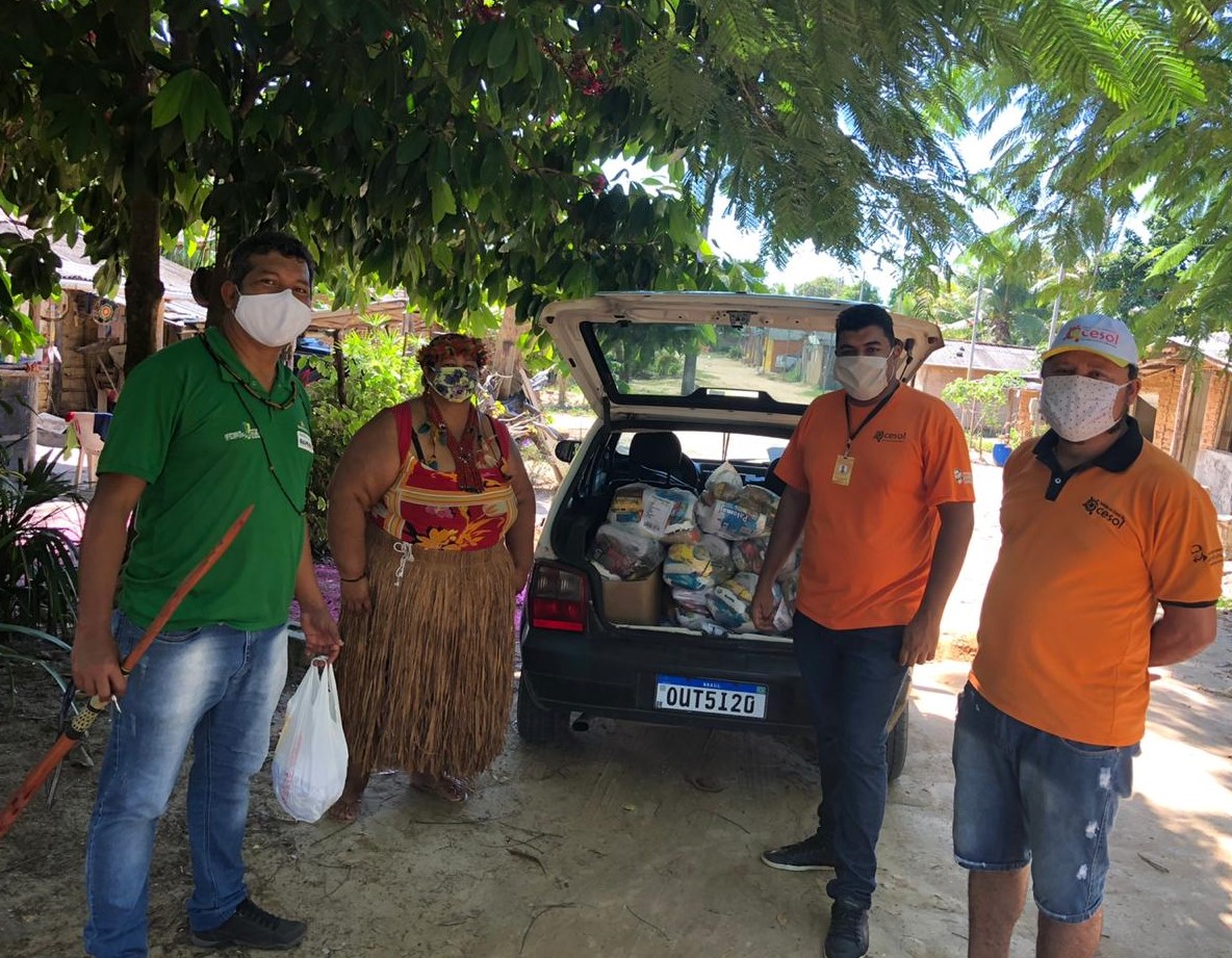 No último sábado, 6, famílias de três aldeias foram beneficiadas com 30 cestas básicas doadas pelo Centro Público de Economia Solidária (Cesol) seccional Litoral Sul. As aldeias Ygalha, Itapoan e Tupã, em Olivença-Ilhéus receberam com gratidão os alimentos e itens de higiene que contribuirão para manter a comunidade em distanciamento social contra o covid-19.