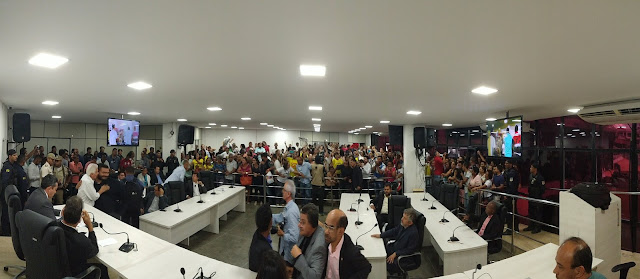 por Andreyver Lima – Sexta-feira, 31 – Uma sessão, com a presença marcante de servidores públicos municipais, fez com que o presidente Chico Reis acatasse a sugestão do vereador Manoel Júnior, que solicitou a suspensão da sessão por cinco minutos, para que os vereadores se reunissem com as representações sindicais e reajustassem pontos divergentes do projeto. As bancadas de oposição e situação se reuniram na sala do presidente da Casa, onde definiram mudanças no projeto. A discussão sobre emendas durou pouco mais de uma hora.
