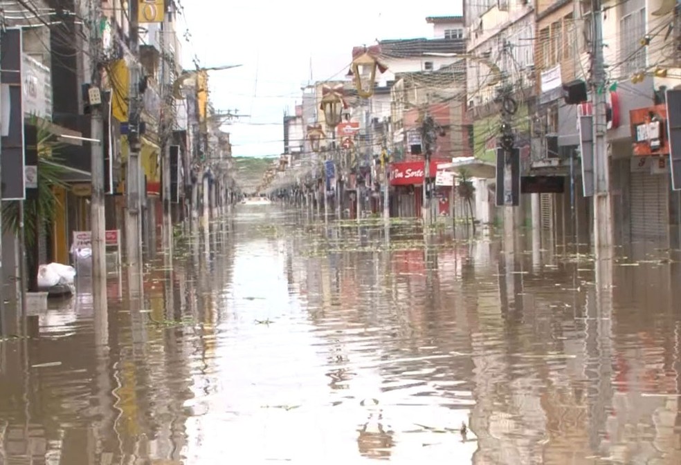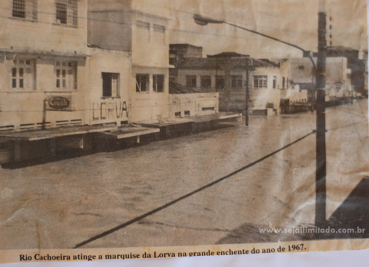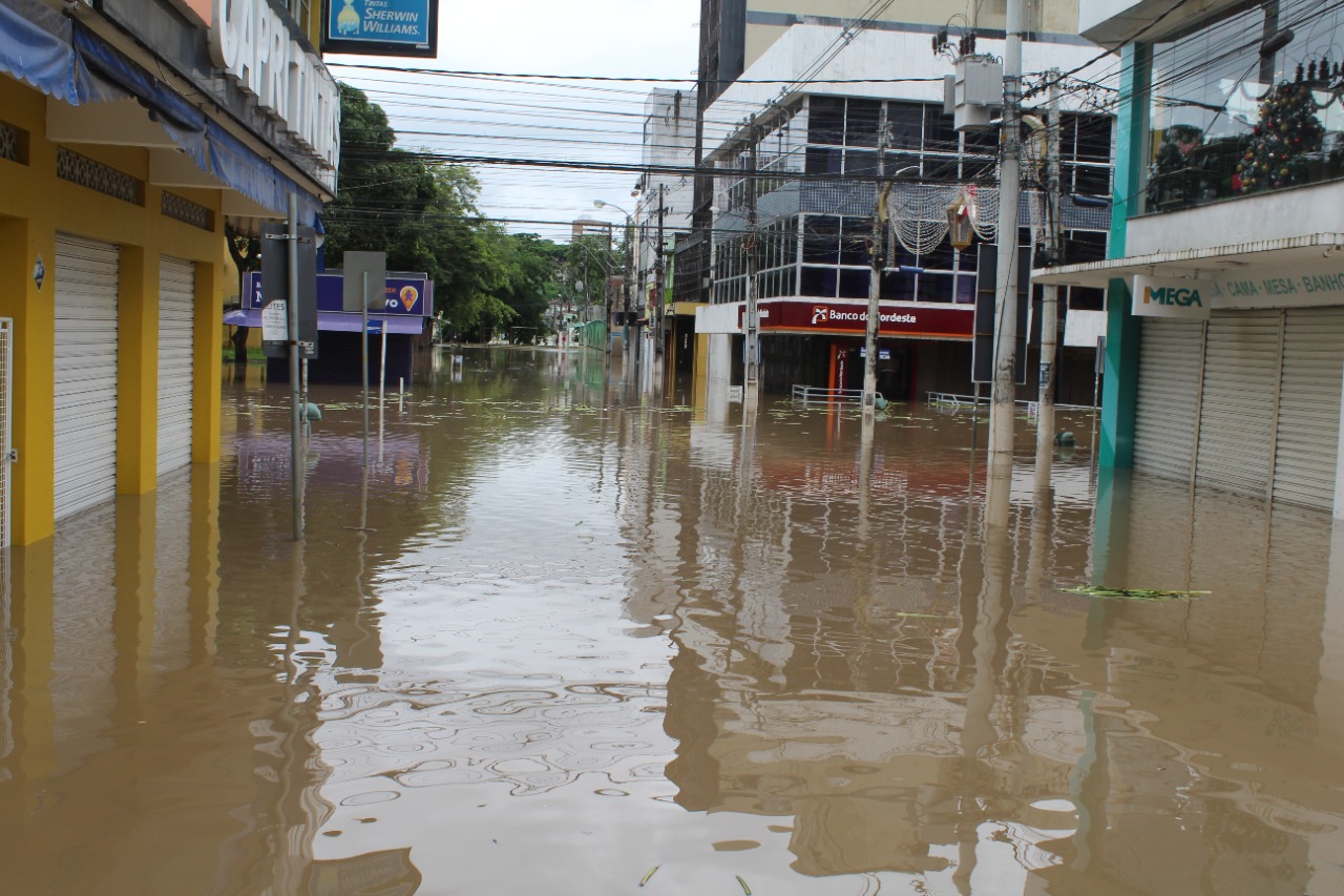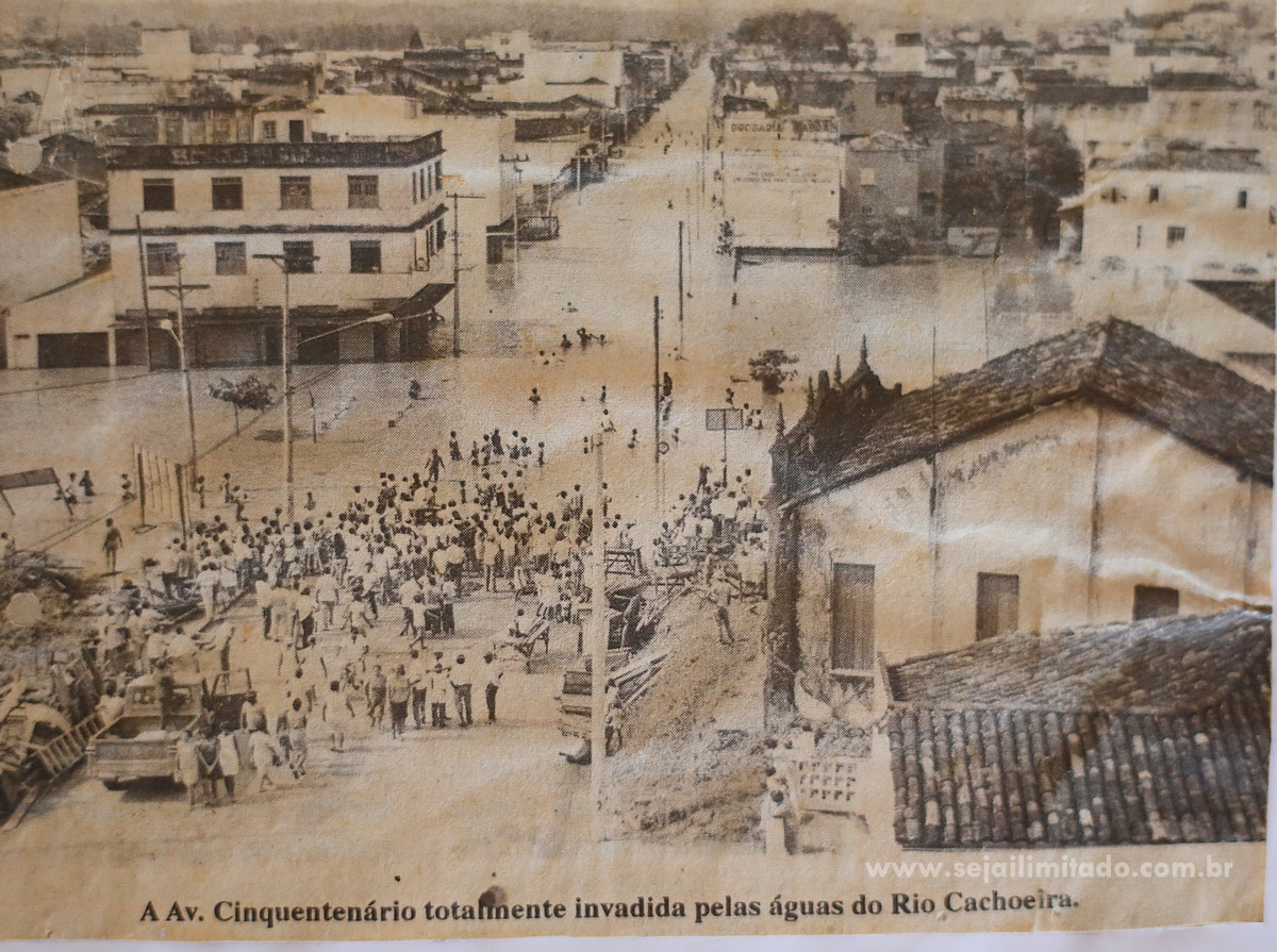 A enchente atingiu o centro e bairros próximos do rio Cachoeira, deixando desabrigados e um rastro de destruição em toda a cidade.