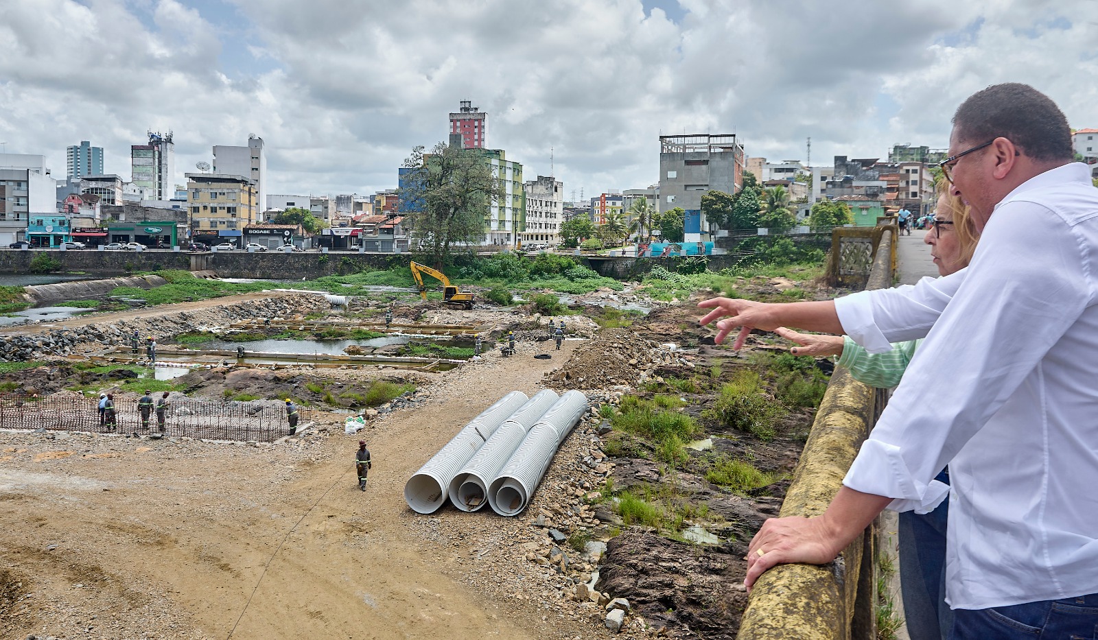 Na sequência, o prefeito vistoriou as fundações da nova ponte sobre o Rio Cachoeira, que terá sete sapatas de concreto armado, responsáveis pela estabilidade da estrutura. De acordo com a SIURB, as etapas estão dentro do cronograma e as empresas responsáveis têm cumprido os prazos definidos.