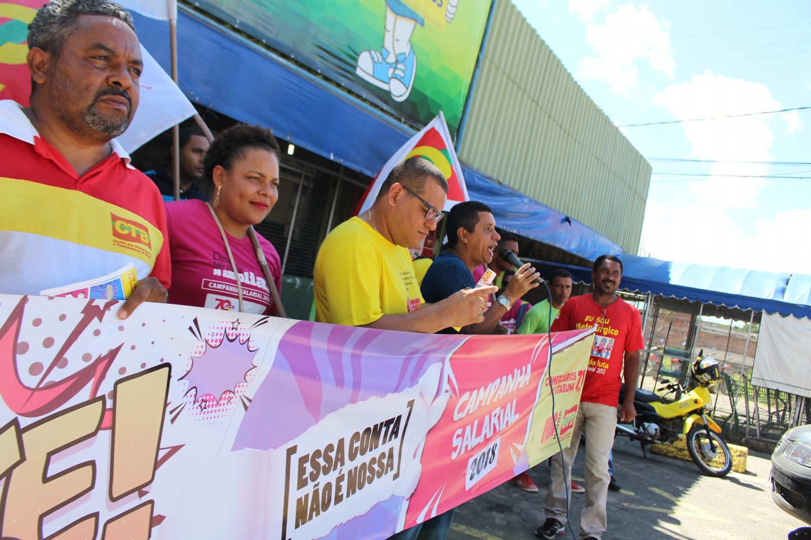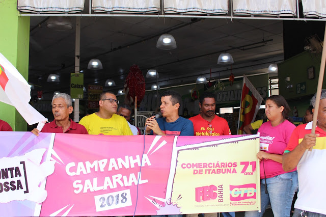 Diretores dos Comerciários estiveram presente nos supermercados Meira, Compre Aqui (Carisma) e Itão, para denunciar o arrocho salarial e as condições insalubres, que segundo o Sindicato, atinge mais de 2 mil trabalhadores em Itabuna.